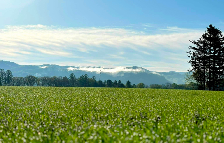 志賀シェフは北海道の小麦を使用したパンの講習会の講師を務める目的で来道し、小麦の生産現場の視察を目的とした畑ツアーの一行とともに前田農産の農場へ足を運んでくれました。